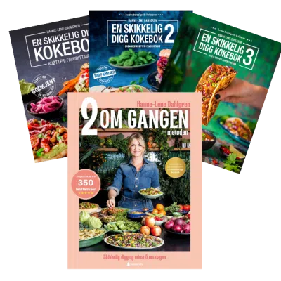 4 x bestselgende kokebøker med over 350 oppskrifter! Den nyeste er 2 om gangen-metoden som sikrer nok mengde frukt og grønt i hver eneste rett!