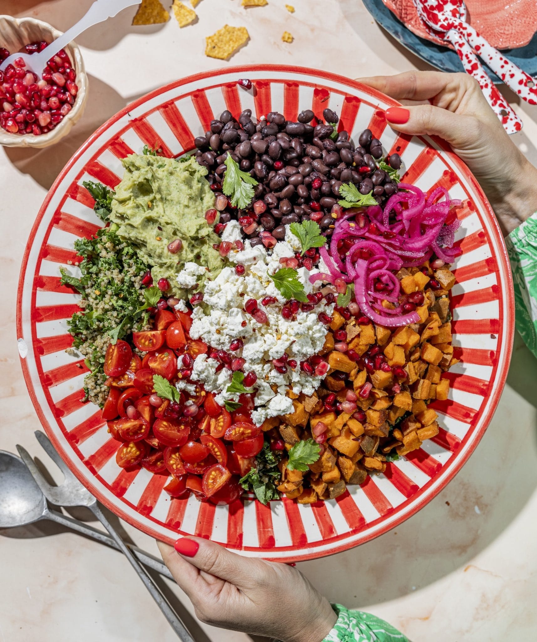 Det som gjør denne ekstra mettende er en guacamole-hack jeg har brukt i årevis: én avokado pluss en halv boks hvite bønner, stavmikset sammen. Proteinrikt, like kremet, og den holder seg grønn mye lenger.