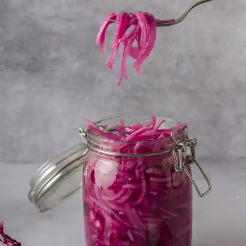 Som veganer blir jeg like lykkelig, hver eneste gang jeg finner “nye” plantebaserte oppskrifter! Denne er SÅ god! Jeg kommer aldri til å spise rødløken “natural” igjen;) I går reddet den sylta rødløken min, den litt for heite chilligryta mi! Den dempet rett og slett det sterke, nok til at ganen hylte i fryd, istedefor i smerte!;)