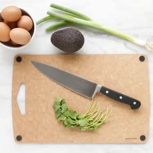 Skjærebrettene jeg bruker: De eneste jeg vet merket på er de fra epicurean som er laget av resirkulert papp, de liker jeg veldig godt. I tillegg har vi noen tykke i plast som har vært med veldig lenge, muligens fra IKEA.